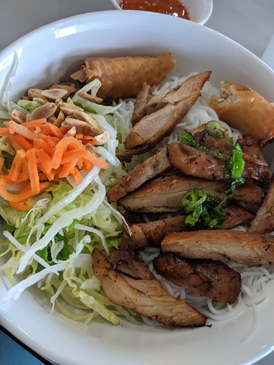 We tried the pho and the grilled chicken sándwich with a Vietnamese coffee. The sandwich was decent and coffee was good. But the Pho wasn’t great. Tasted very sweet, maybe. Bit stale and microwaved.