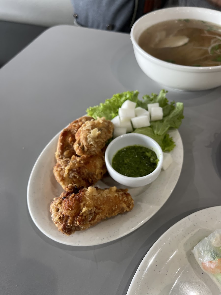 It's really good. I like coming here when I have terrible days because the food is so good that it reminds me that life isn't as bad. Pho broth is really nice and savoury, the Korean Fried Chicken is REALLY good, has a great crunchiness to it paired with the pickled radish, I just wish they had more radish under it!